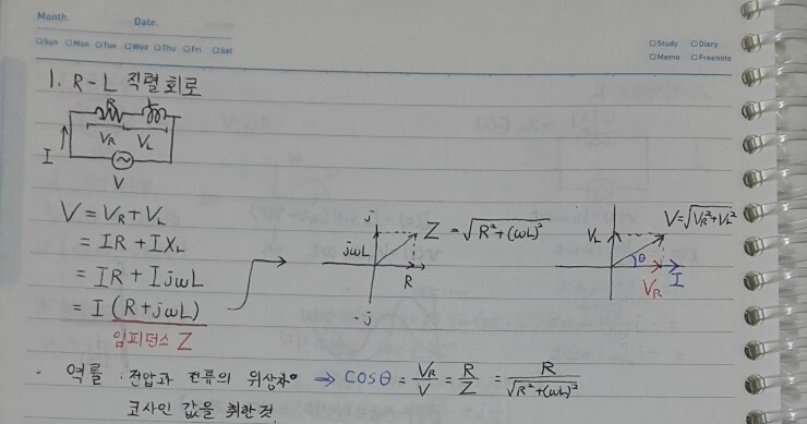 근데 저기서 빨간색 Vr은 왜 가로로 가느냐?? Vr이랑 전류 I랑은 이 회로에서 같은 위상이기 때문!