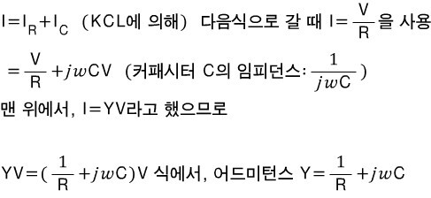 또한, V=IZ 이라는 식을 변형시켜서 I=YV 의 식으로 편하게 계산합니다.(Y는 어드미턴스, 임피던스의 역수)